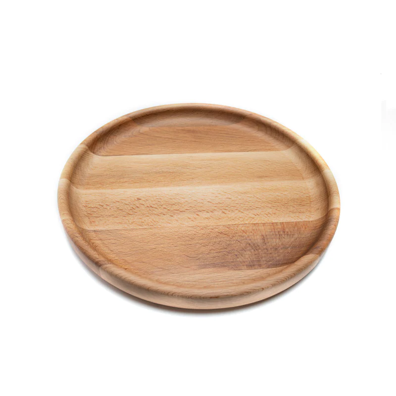 A beautiful plate with a fine beechwood finish that looks natural and can be used to serve sauces, hold very small snacks, or display spices.