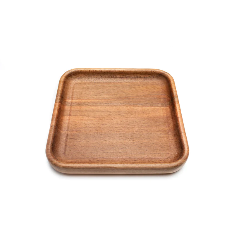 A beautiful plate with a fine beechwood finish and a geometrical design that will fit any kitchen style. It can be used to serve sauces, hold very small snacks, or display spices.
